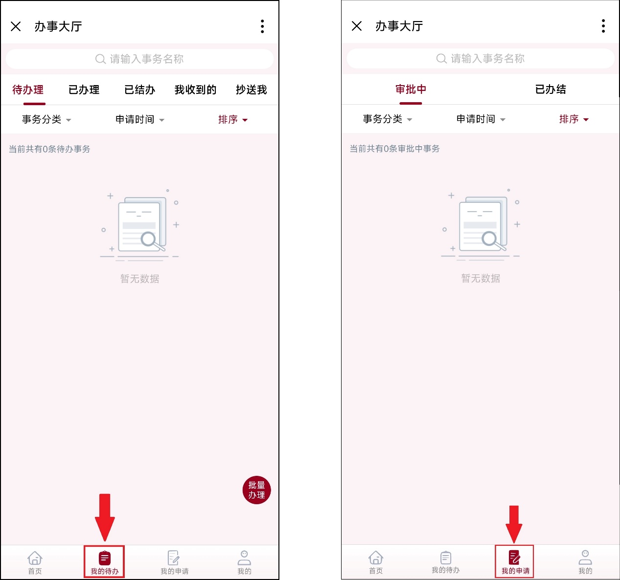 「我的申请」页面:可查看自己提交的申请进度(审批中/已办结),随时跟踪业务办理情况;